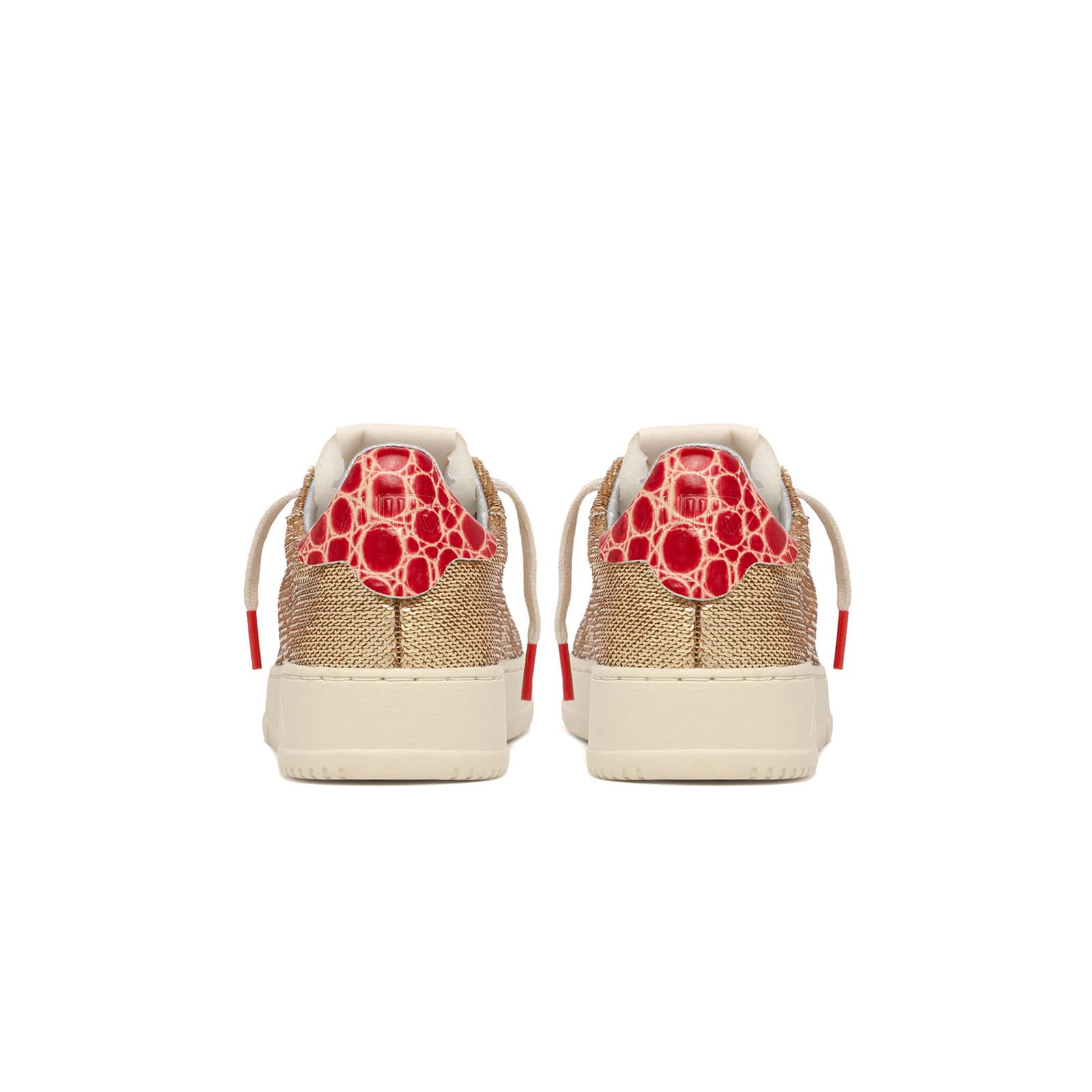 Turn heads with the Autry Dallas Glitter Platinum/Red, a statement sneaker entirely covered in sparkling gold glitter, finished with a bold red heel tab for a striking contrast. Blending retro tennis inspiration with glamorous style, this low-top design features premium leather details, cushioned lining, and a durable rubber sole for everyday comfort. The perfect mix of shine, sport, and sophistication.