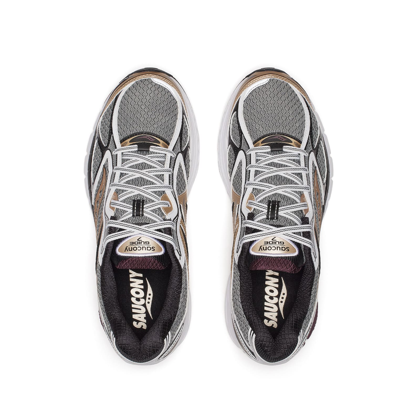 Enjoy lasting support and comfort with the Saucony ProGrid Guide 7 in White/Bronze for women. Featuring ProGrid cushioning and breathable mesh, this running shoe offers stability and durability for daily workouts and casual wear.
