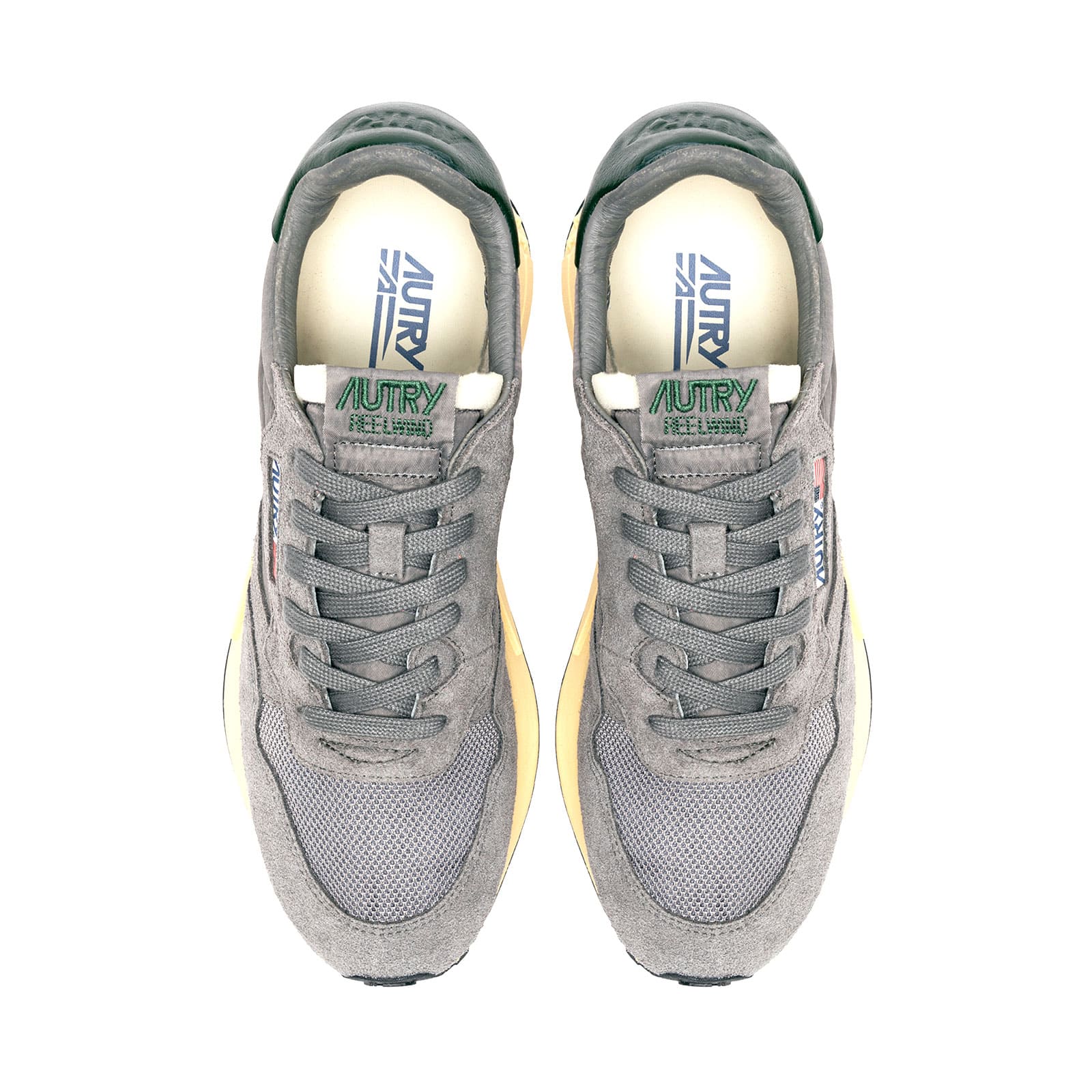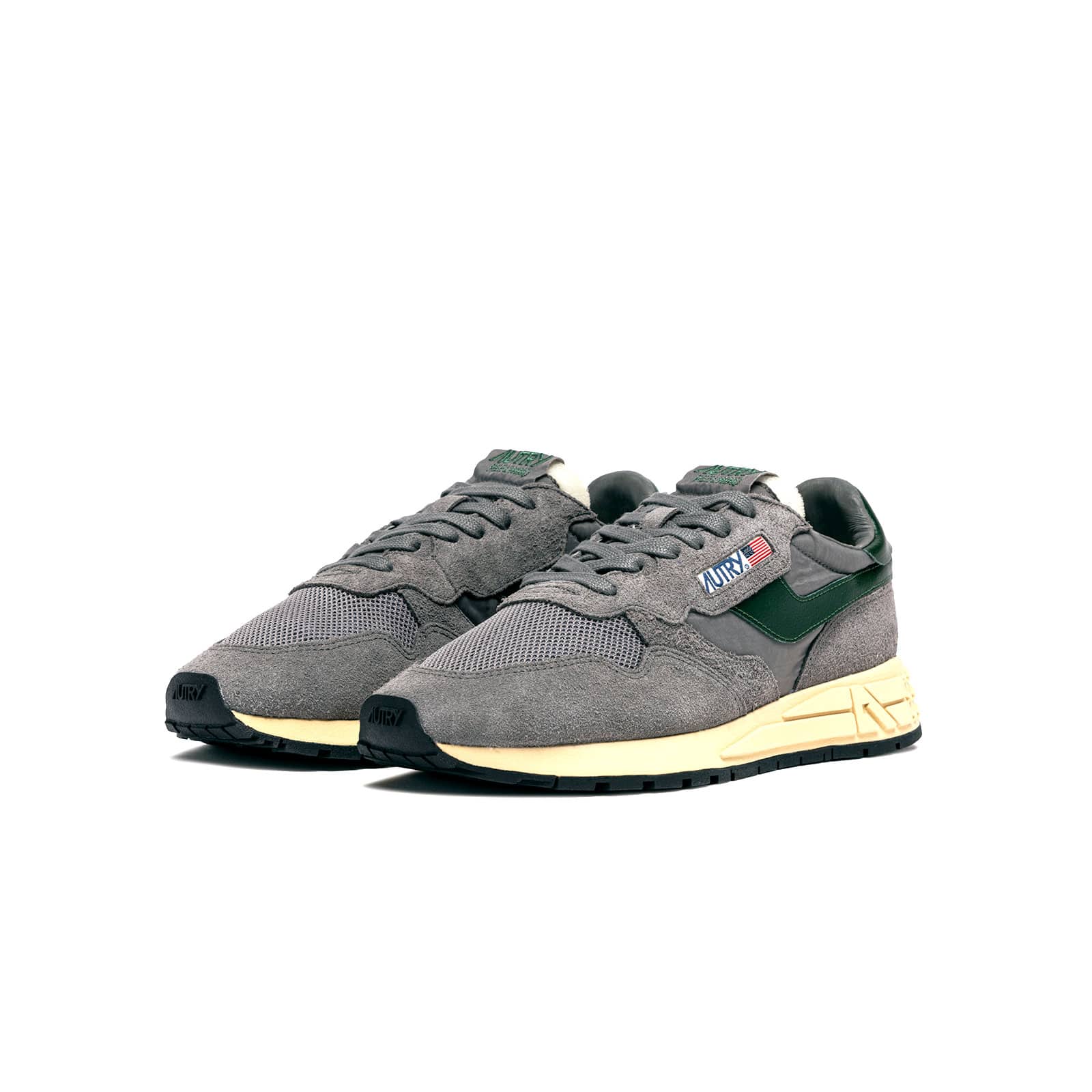 The Autry Reelwind Men in Grey and Dark Green blends retro running heritage with bold, modern flair.